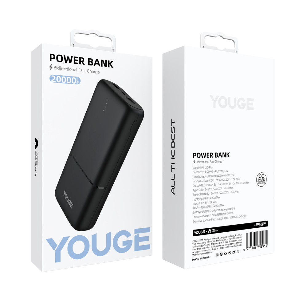 Banque d'Énergie Portable Grande Capacité 20000 mAh Recharge Rapide, Prix d'Usine en Gros