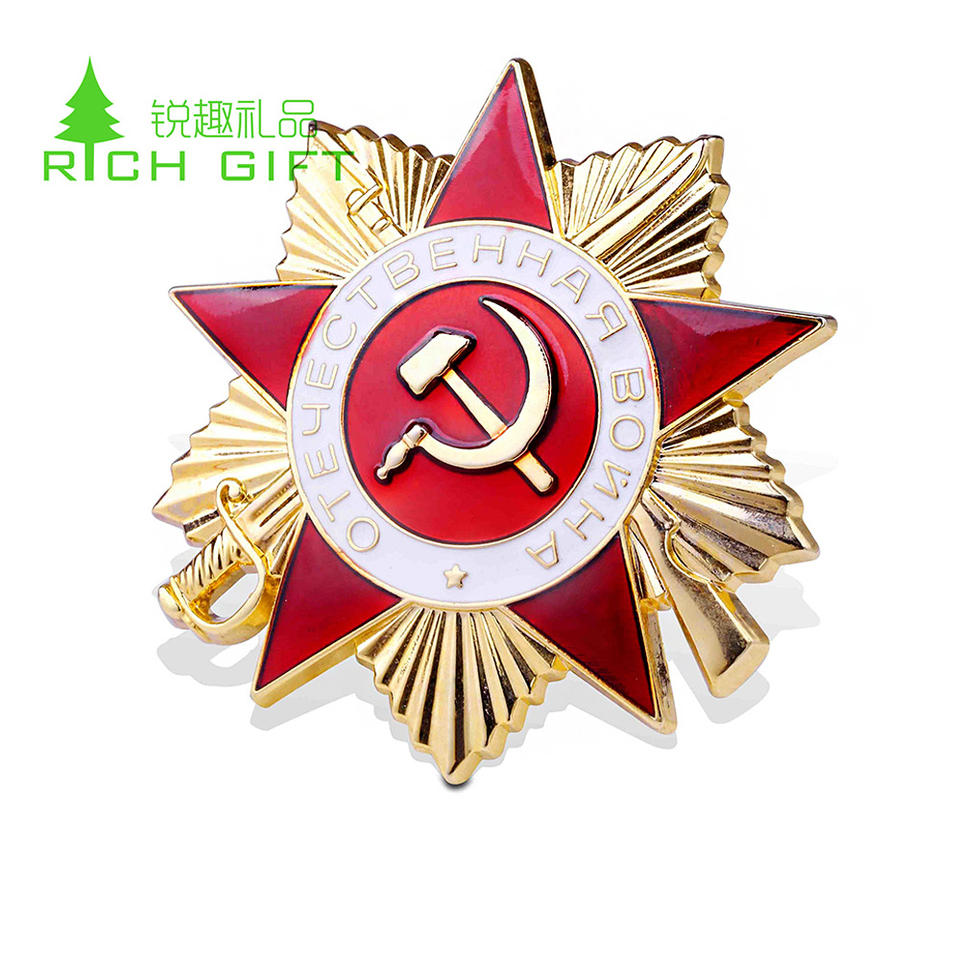 Badge en métal émaillé personnalisé, drapeau antique doré, vente chaude, haute qualité, prix bas