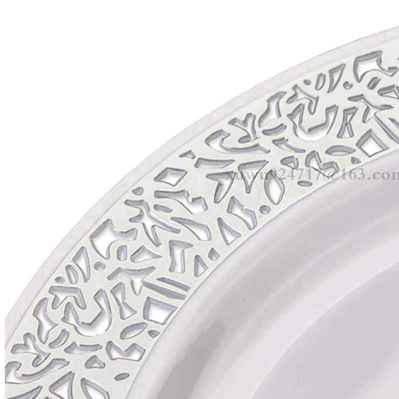Low Price Hollow Out Style Bulk Round Dinner Plates Antique Reef Gold Wedding Decorative Setting Plastic Plates