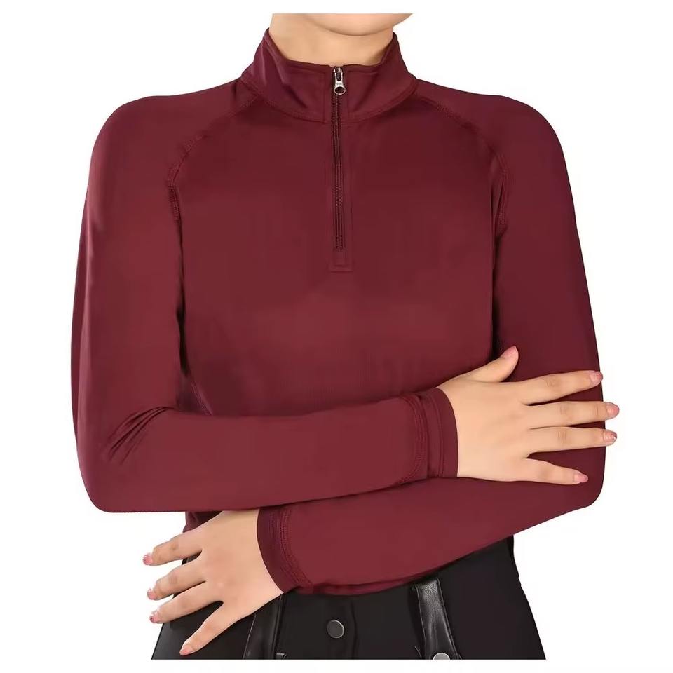 T-shirt d'équitation à manches longues à bas prix, chemises d'équitation pour concours, vente en gros de chemises d'équitation, chemises d'équitation personnalisées en maille respirante