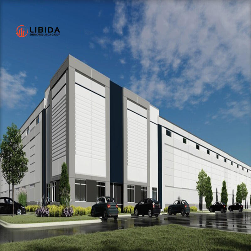Entrepôt à structure métallique à bas prix, atelier à ossature acier avec mur rideau en verre, usine à ossature métallique avec mezzanine