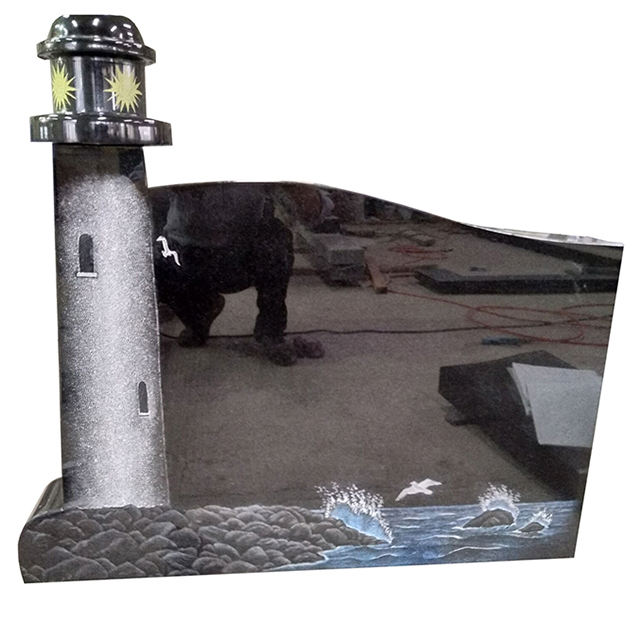 Pierre tombale personnalisée en granit noir absolu à bas prix, design phare, monument funéraire