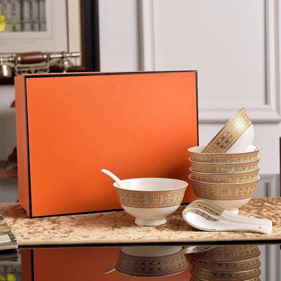 Promotion à bas prix, service de table en porcelaine de luxe britannique, bol à salade en céramique et cuillère