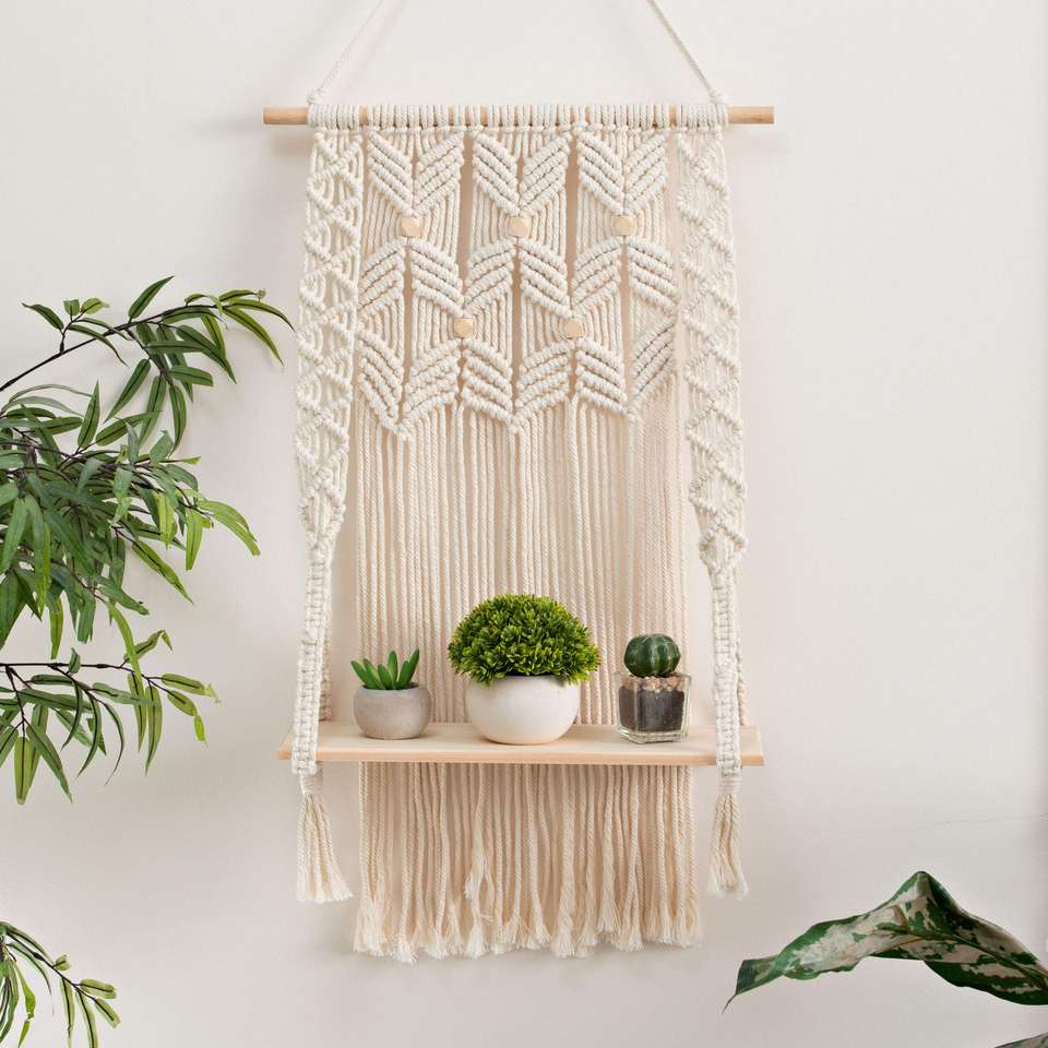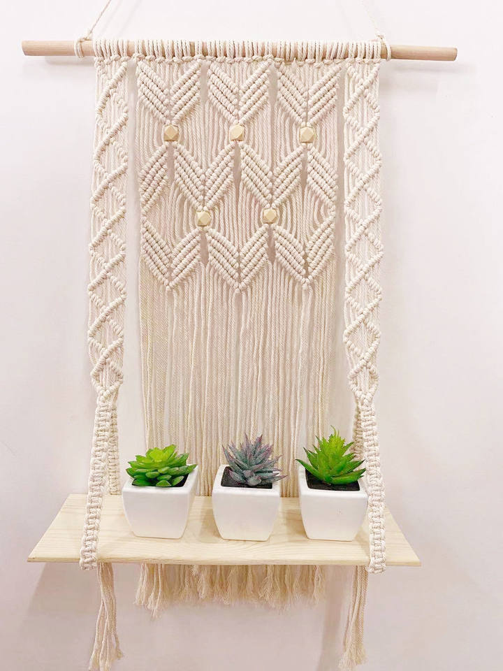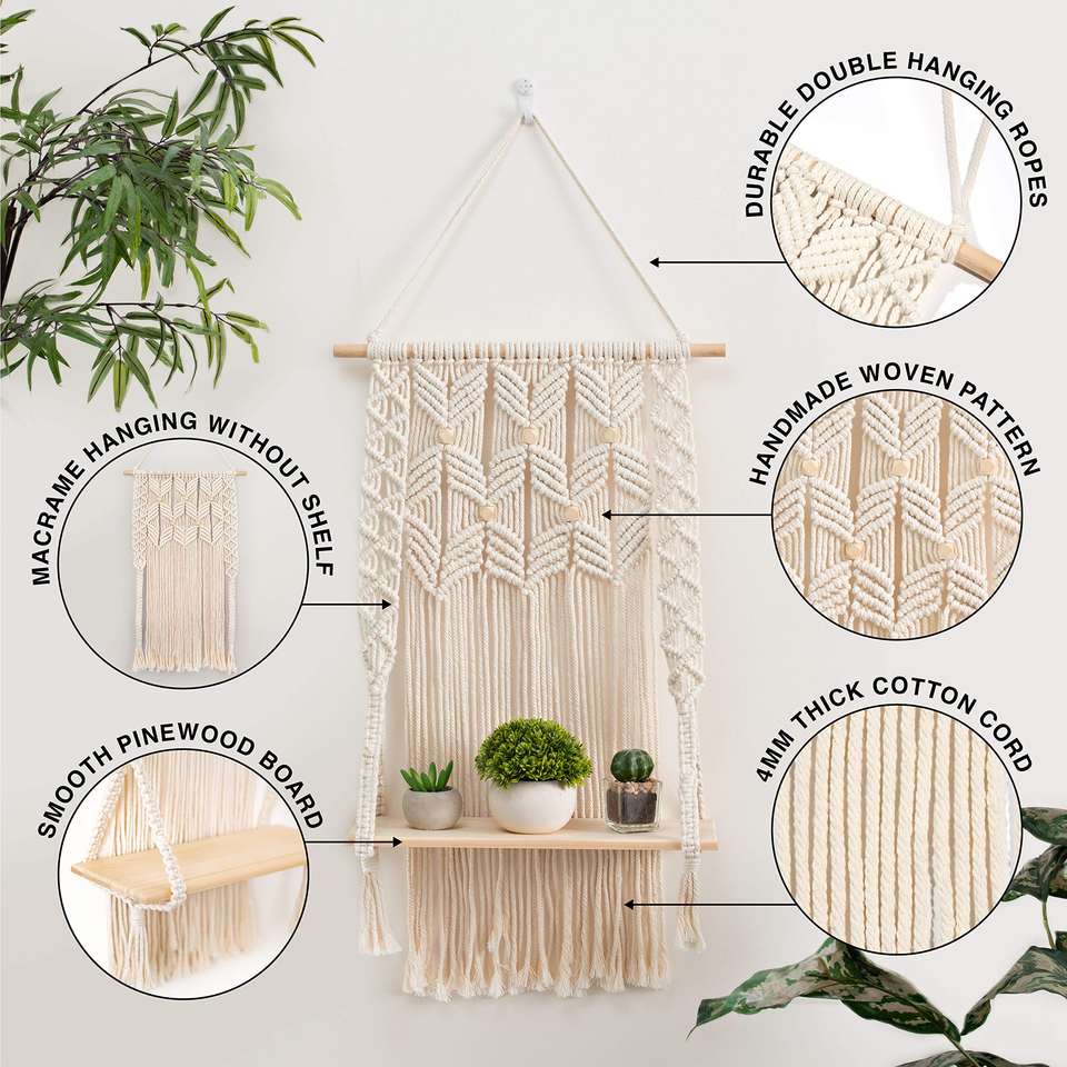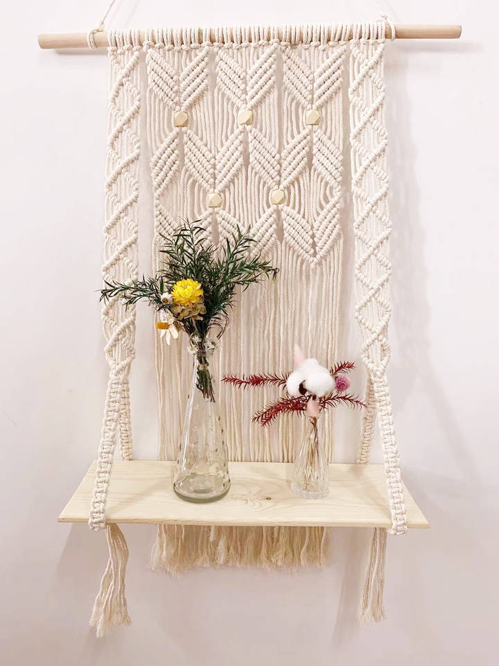 Vente à bas prix Promotion Stock fait à la main en macramé étagère Boho plante cintre macramé tenture murale tapisserie pour la décoration murale de la maison