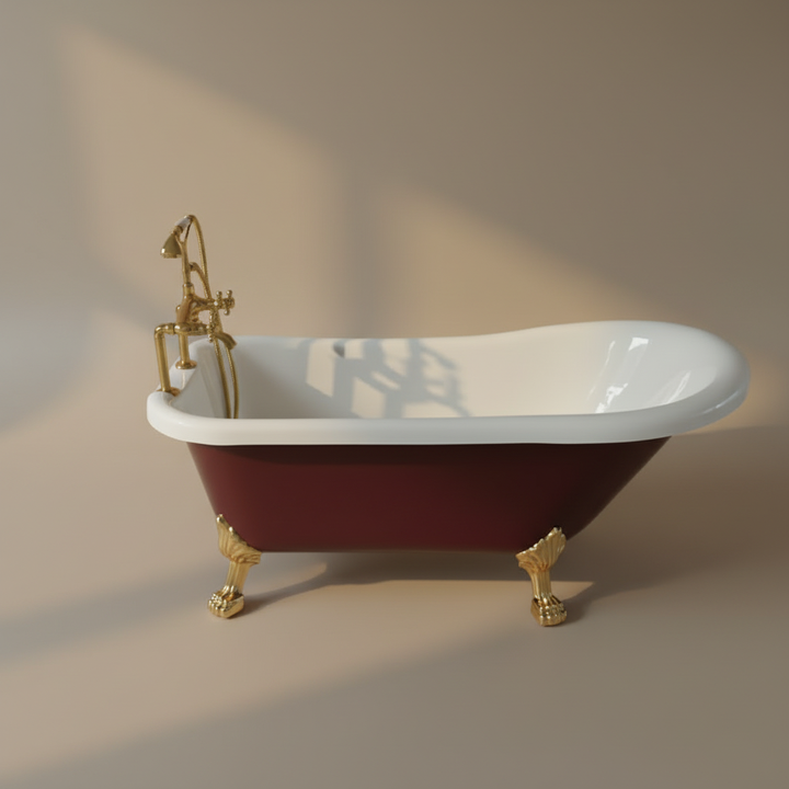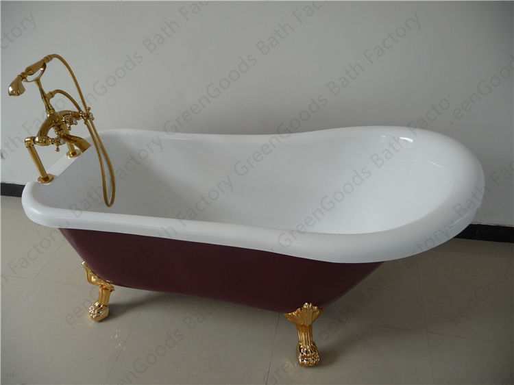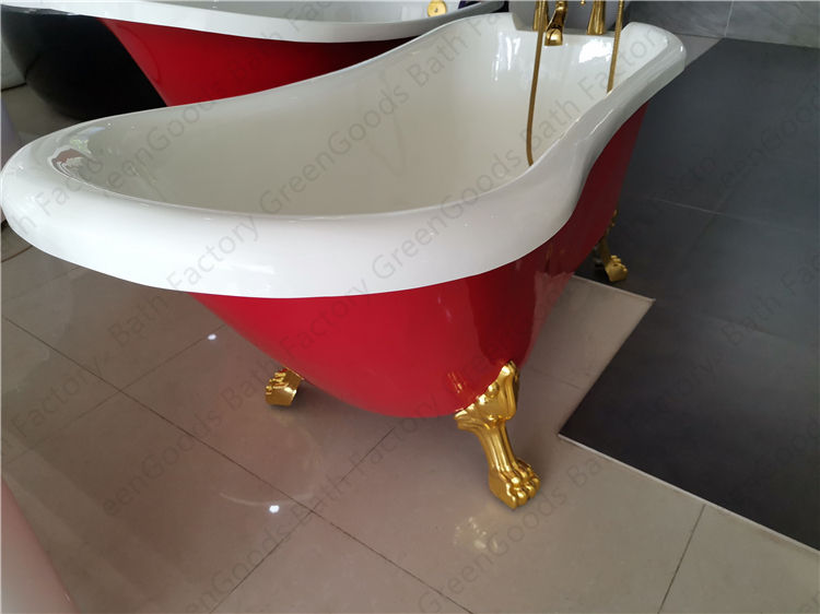 Baignoire à pattes en acrylique rouge de petite taille à bas prix pour adultes avec quatre pieds en alliage d'aluminium