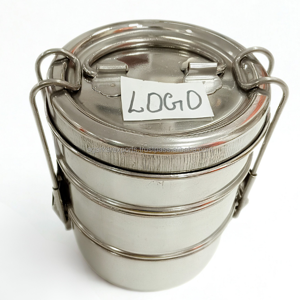 Boîte à lunch en acier inoxydable à bas prix, étanche, triple niveau, capacité de 750 ml, utilisation au bureau et en voyage, facile à laver, conception de repas à emboîtement