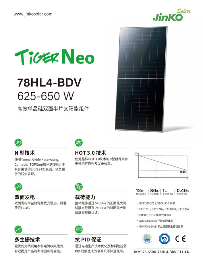 Low Price for JKM625-650N N-Type Monocrystalline Solar Panels 625-650W