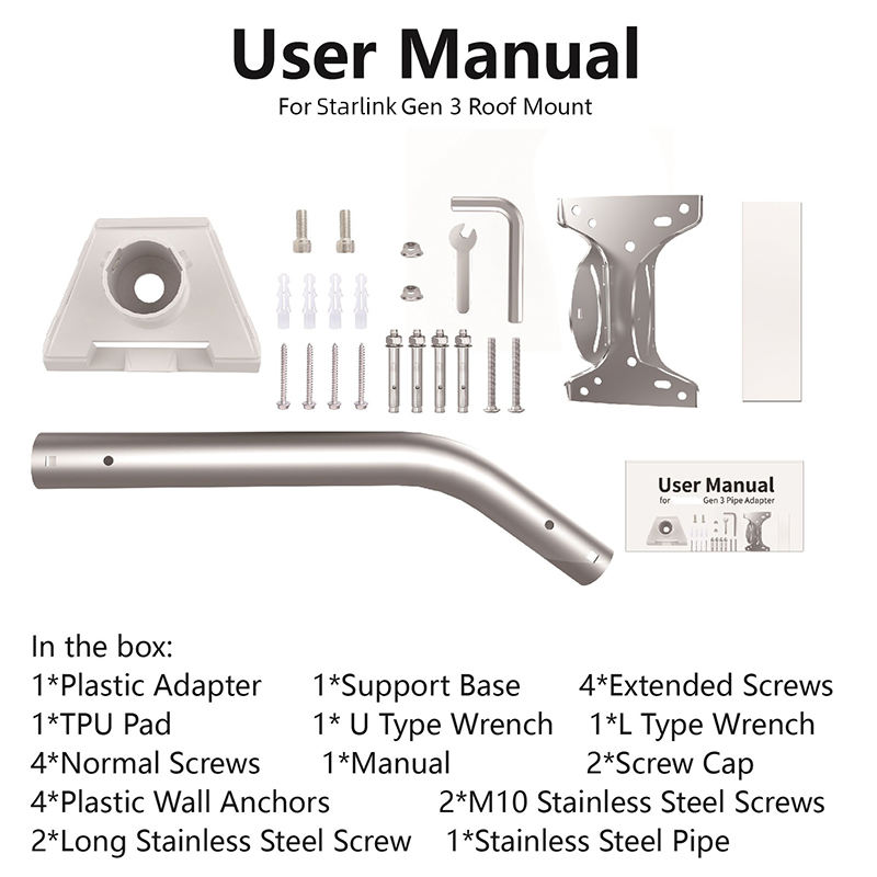 Kit de montage mural et de toit Starlink Gen3 en acier inoxydable réglable, résistant aux chocs et étanche, blanc, accessoires pour satellite à prix réduit