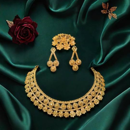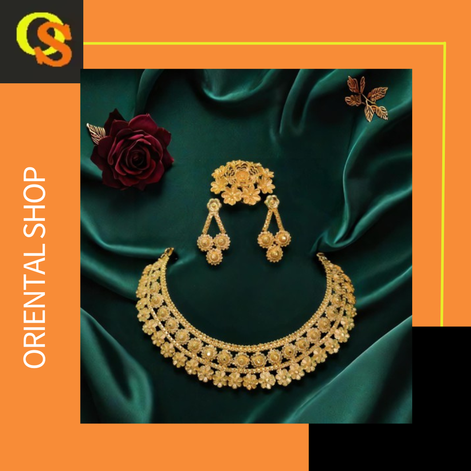 Low Prices 22K Gold Plated Necklace Earrings Ring Set with Traditional Designed Bridal Jewelry Set for Sale