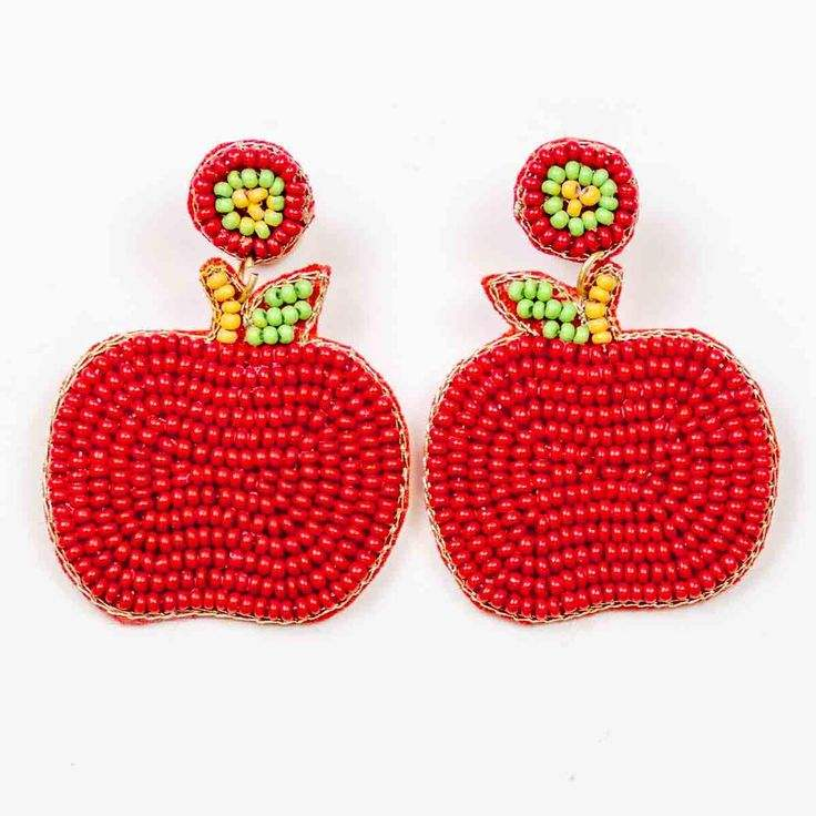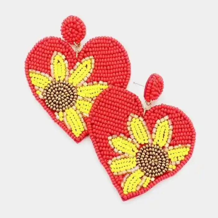 Boucles d'oreilles brodées à bas prix avec perles en forme de cœur de couleur rouge, faites à la main, en vente