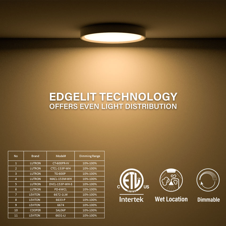 Plafonnier encastré à profil bas, rond de 5 pouces, LED, fin, à montage en surface, blanc