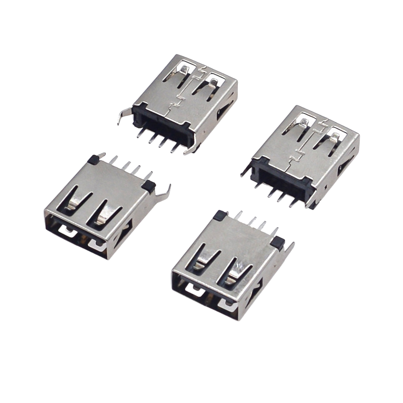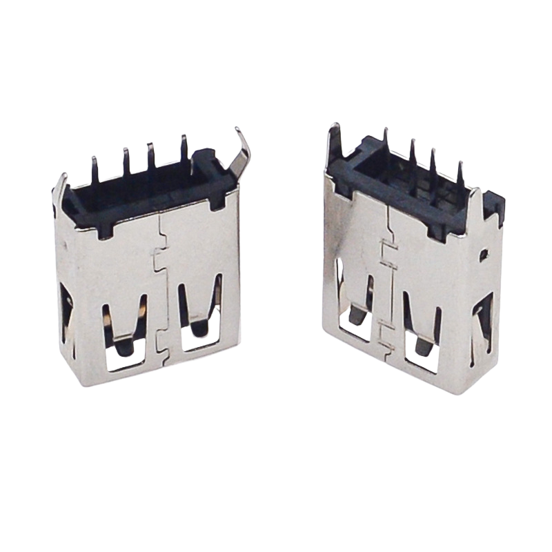 Connecteur USB 2.0 Type-A femelle à profil bas, corps court de 11,5 mm avec bride renforcée pour un montage horizontal sécurisé sur circuit imprimé