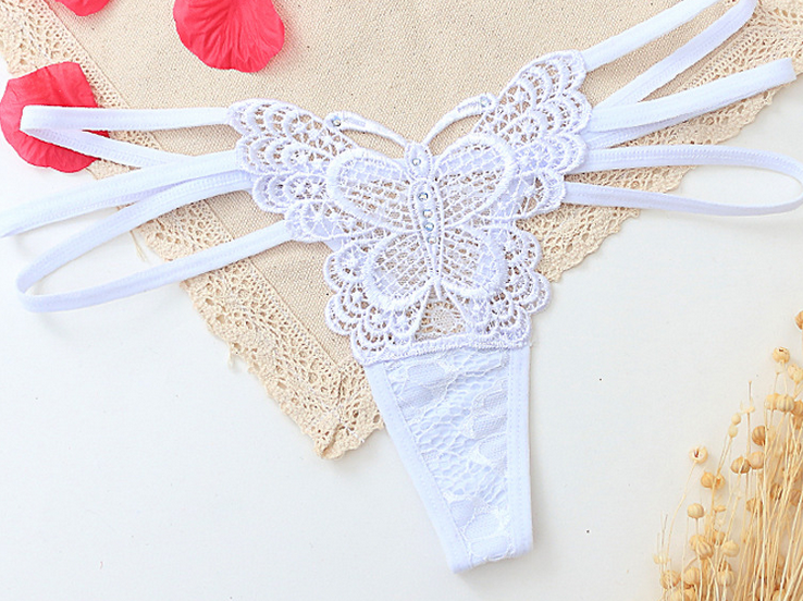 String sexy en dentelle à taille basse pour femmes, culotte papillon