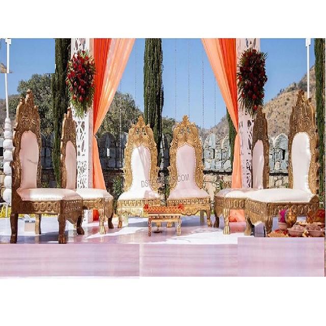 Low Seater White Gold Vidhi Mandap Chairs SetProduct name