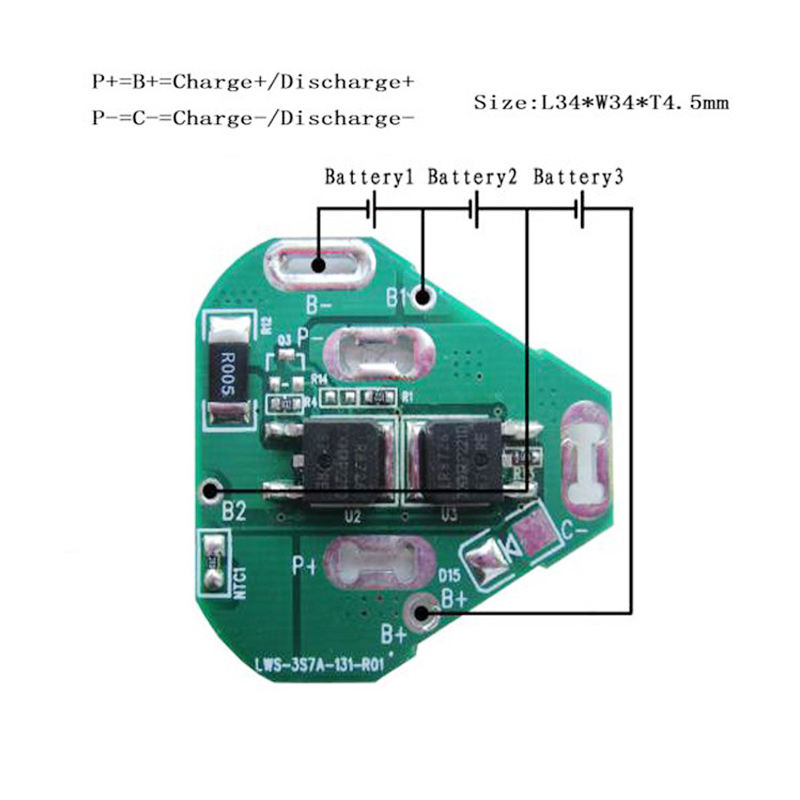 Assemblage de circuits imprimés triangulaires pour véhicules électriques à faible vitesse, batteries 3S 7A, packs de batteries 12V, BMS intelligent, circuits imprimés Lifepo4
