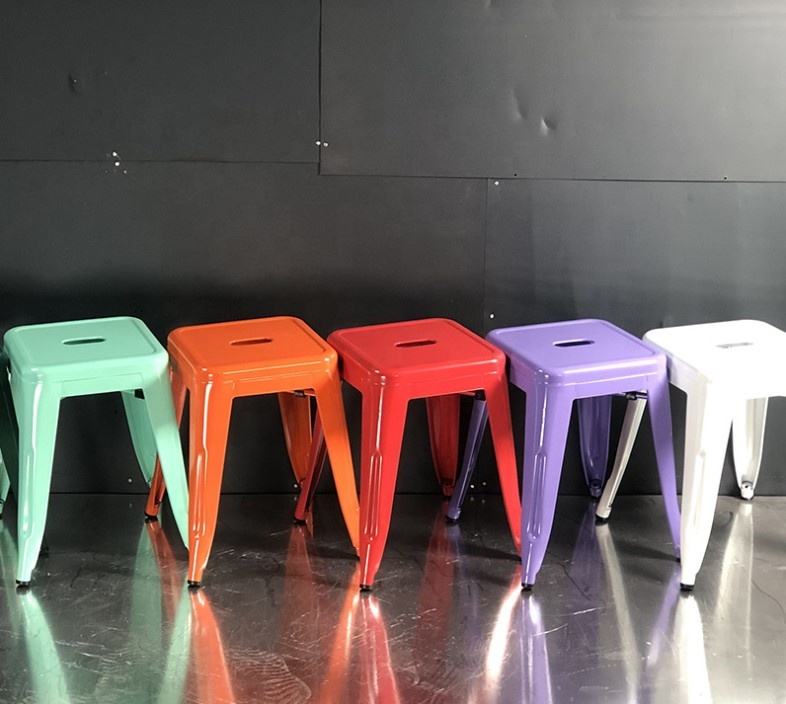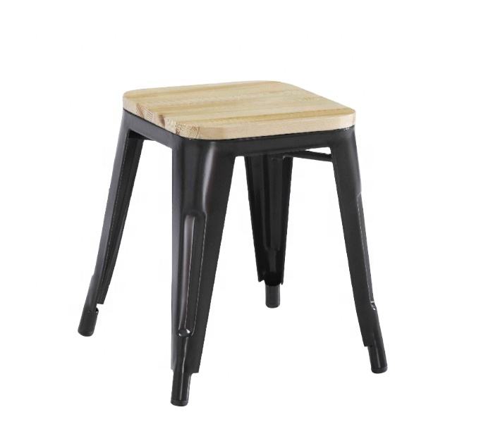 Tabouret bas en métal de style Tolixs avec siège en bois Chaise en métal utilisée pour la chaise de maternelle