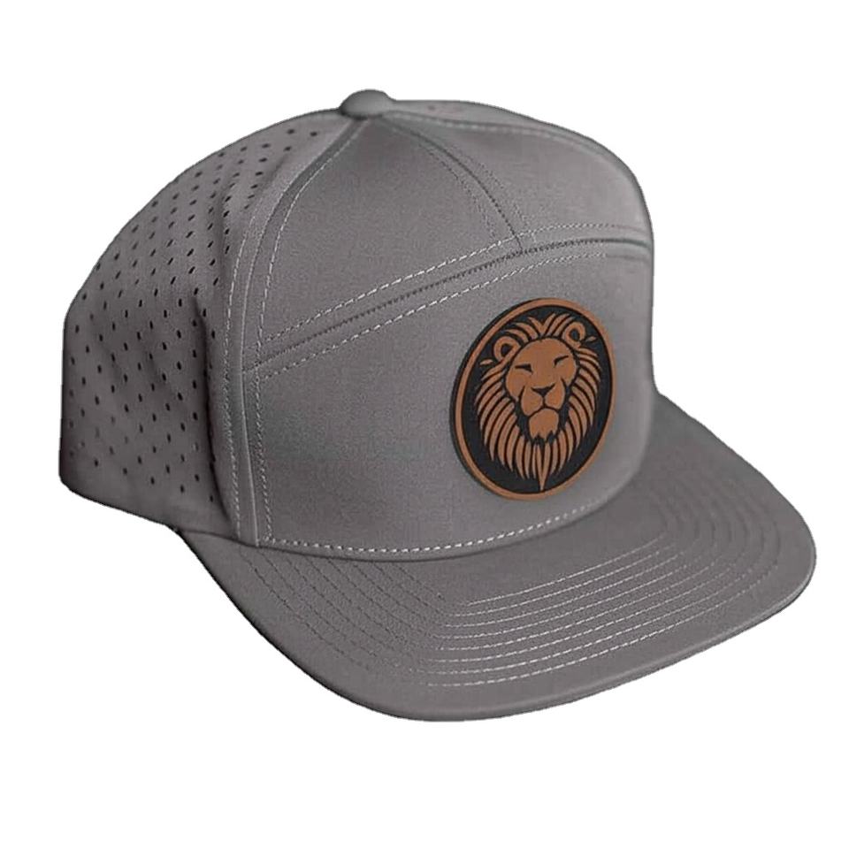 Faible taxe 7 panneaux Laser Performance Golf chapeau 100% Polyester personnalisé en cuir Patch Logo étanche perforé Sport casquette pour Trekking