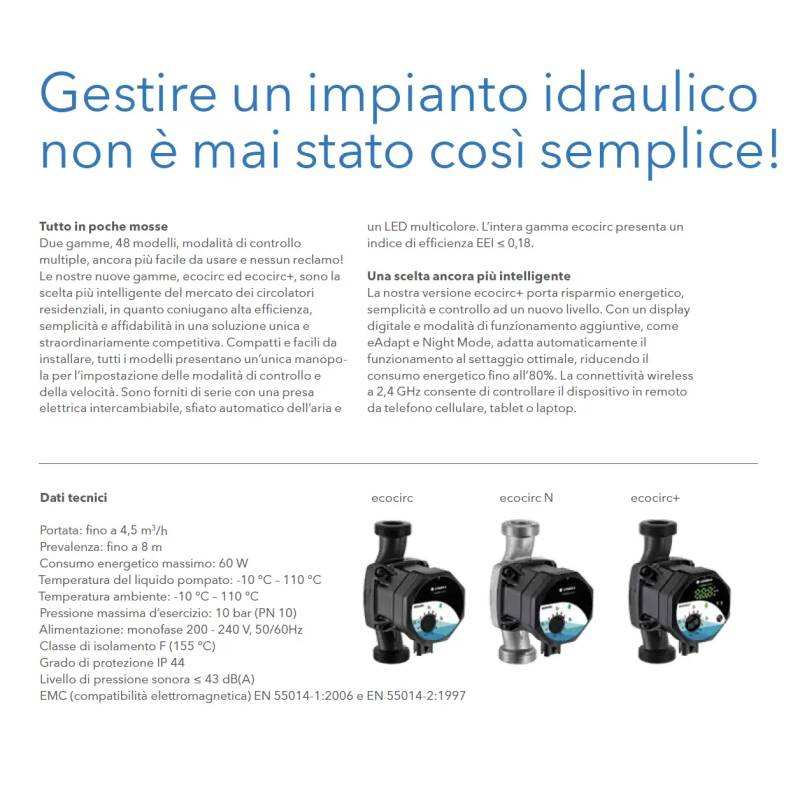 Pompe de circulation HVAC à haute efficacité Lowara Ecocirc Basic 32-6/180 G 2'' ErP