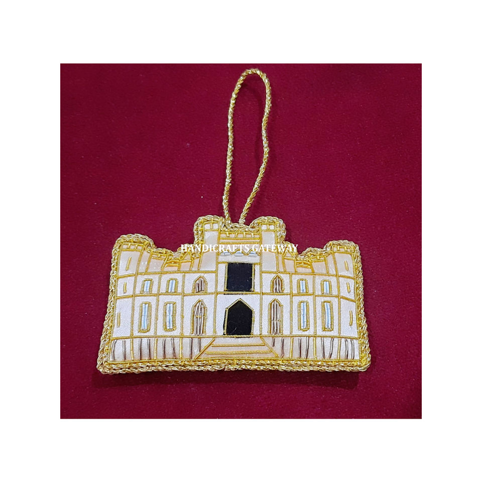Ornement suspendu en forme de bâtiment, broderie Zari de haute qualité, couleur jaune, prix le plus bas, pour les fêtes de Noël