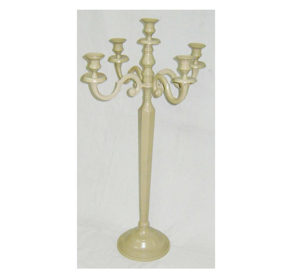 Prix le plus bas, candélabre en métal avec revêtement en poudre ivoire, 5 bras, porte-bougie, centre de table de mariage, support décoratif pour Noël