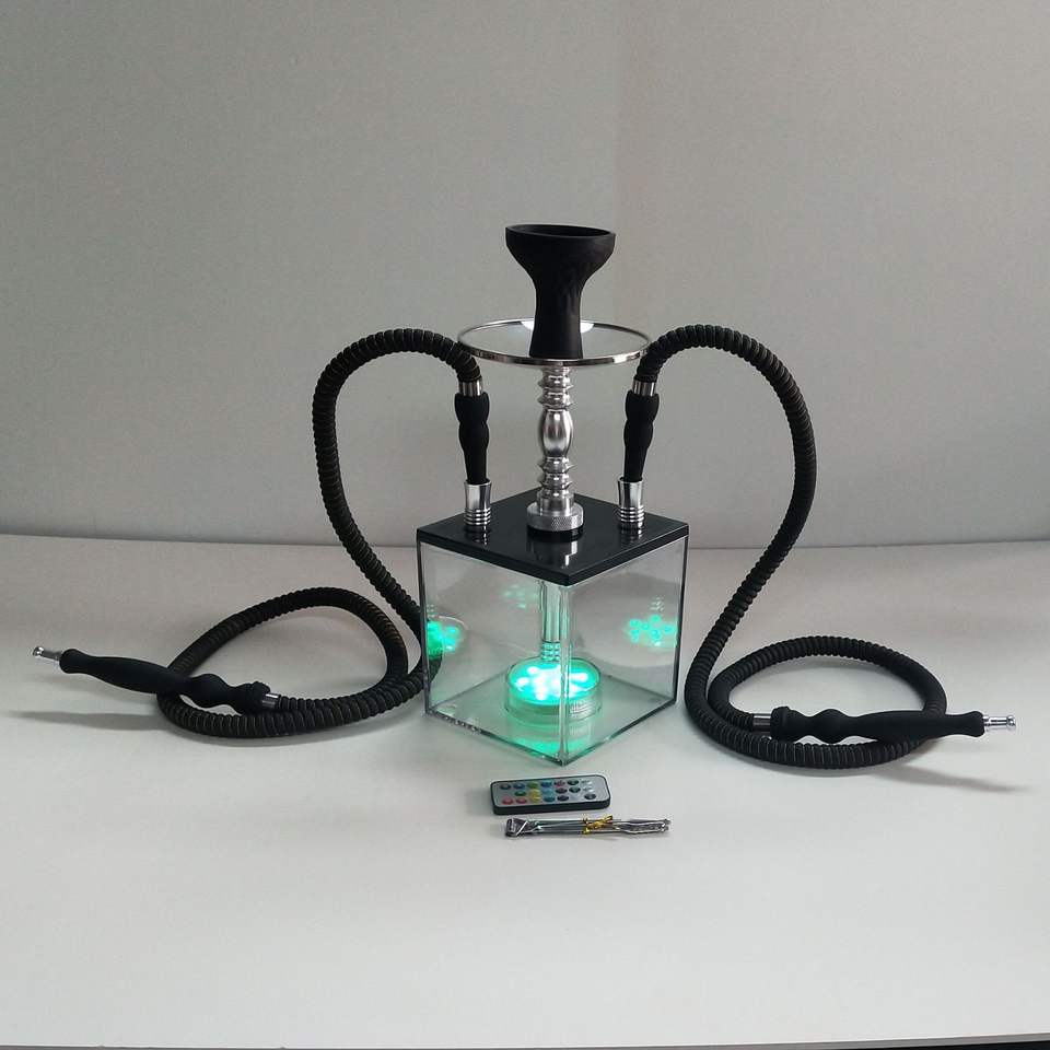 Prix le plus bas plastique biodégradable carré boîte-cadeau narguilé Chicha Hokah pas cher acrylique fumée LED narguilé Shisha