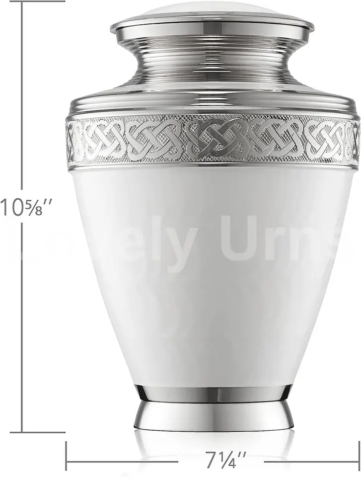 Products Name:Elegant Pearl White Silver Brass Cremation Urns