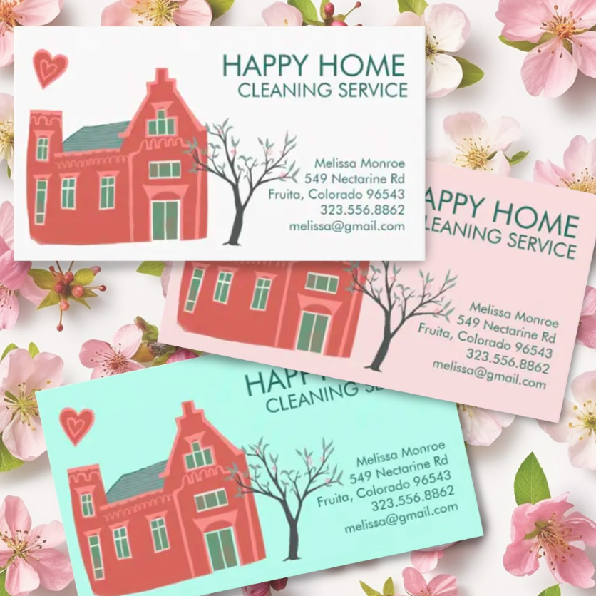 Cartes de fidélité pour impression personnalisée maison nettoyage Services à domicile charmant rose vert carte de visite papier cartes de remerciement