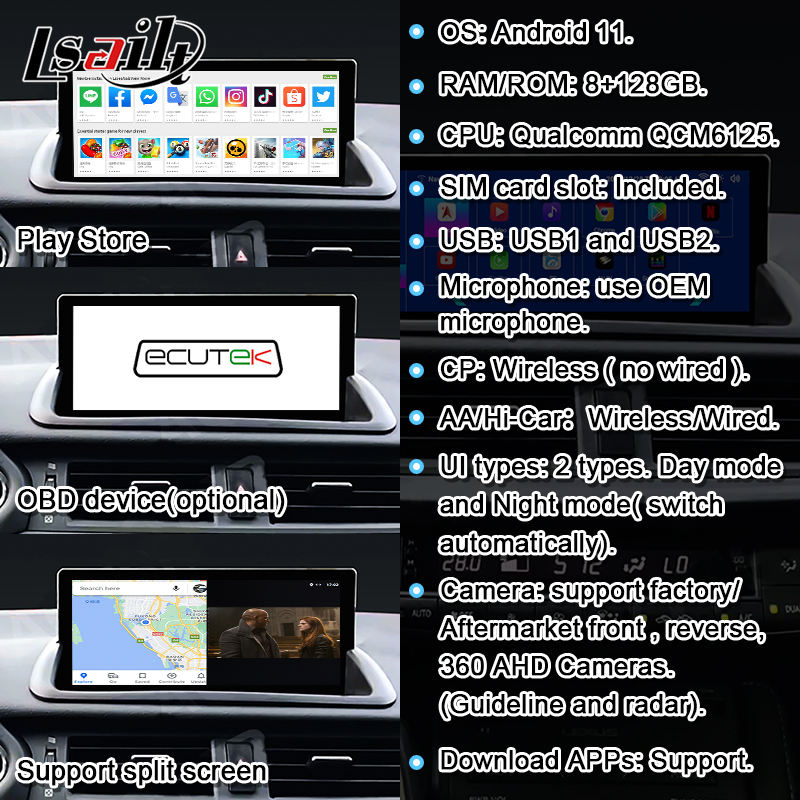 Boîte d'interface vidéo automatique8G CarPlay Android pour Lexus CT200H 12.3 pouces équipée de Mirror Link, Spotify, Google Play