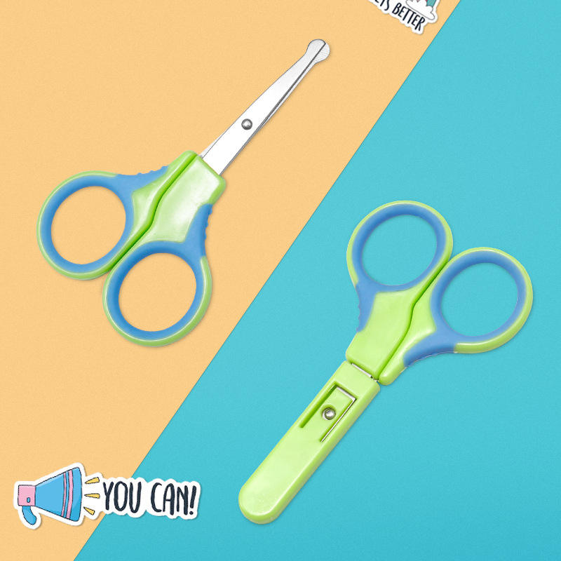 Lu Ban's Work Student Scissors Round Tip With Sleeve Portable Paper Cutting Craft Scissors For Home Use