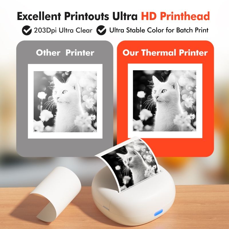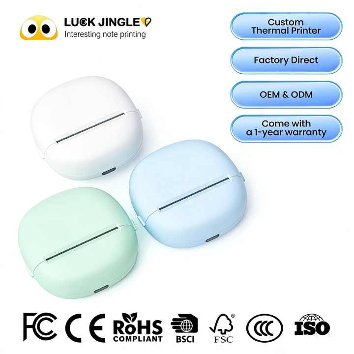 Mini-imprimante thermique Luck Jingle pour téléphone, batterie 1500 mAh, compatible Android/iOS, pour étiquettes, notes, personnalisation en usine