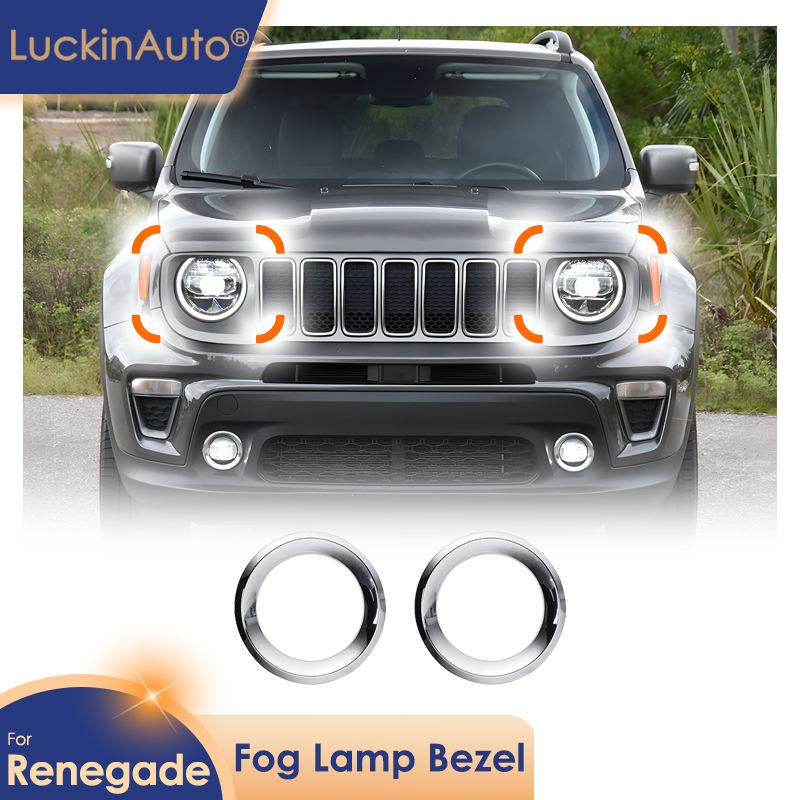 LuckinAuto couvercle de lampe antibrouillard pour Jeep Renegade lunette de lampe antibrouillard 2019 2020 2021 garniture de lampe antibrouillard Chrome OEM 6VMM61SZOAA 6VMM96SZOAA