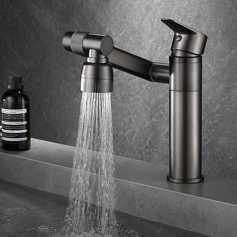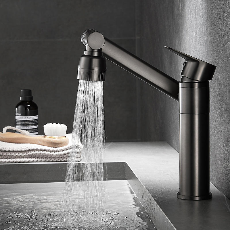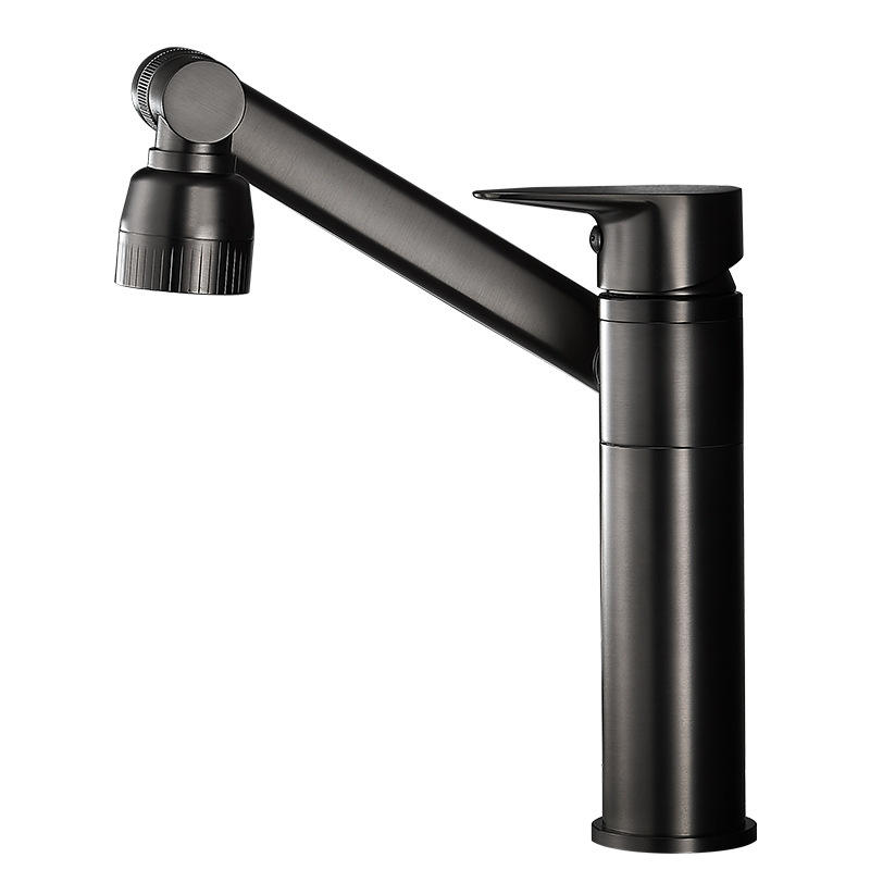 Robinet de lavabo Lucky Cat à poignée unique, finition noircie, montage sur plan, monotrou