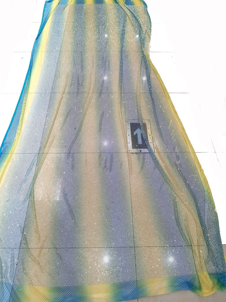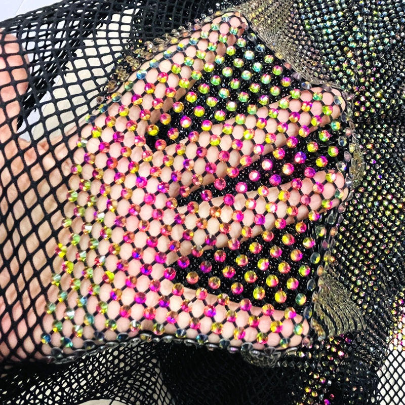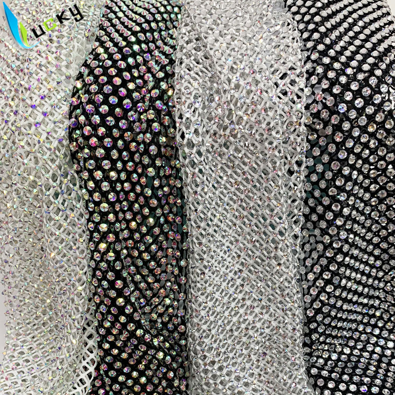 Usine chanceuse de qualité supérieure 1.5 mètre strass maille tissu strass coupe filet maille avec plein strass pour danci