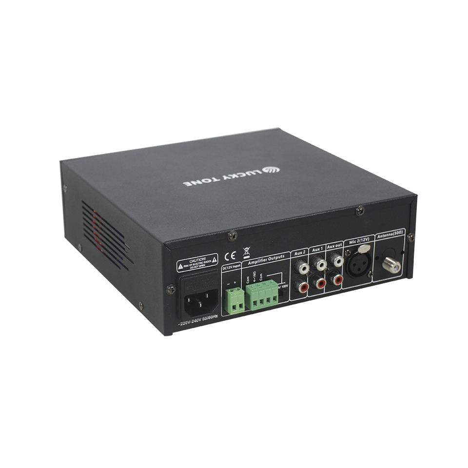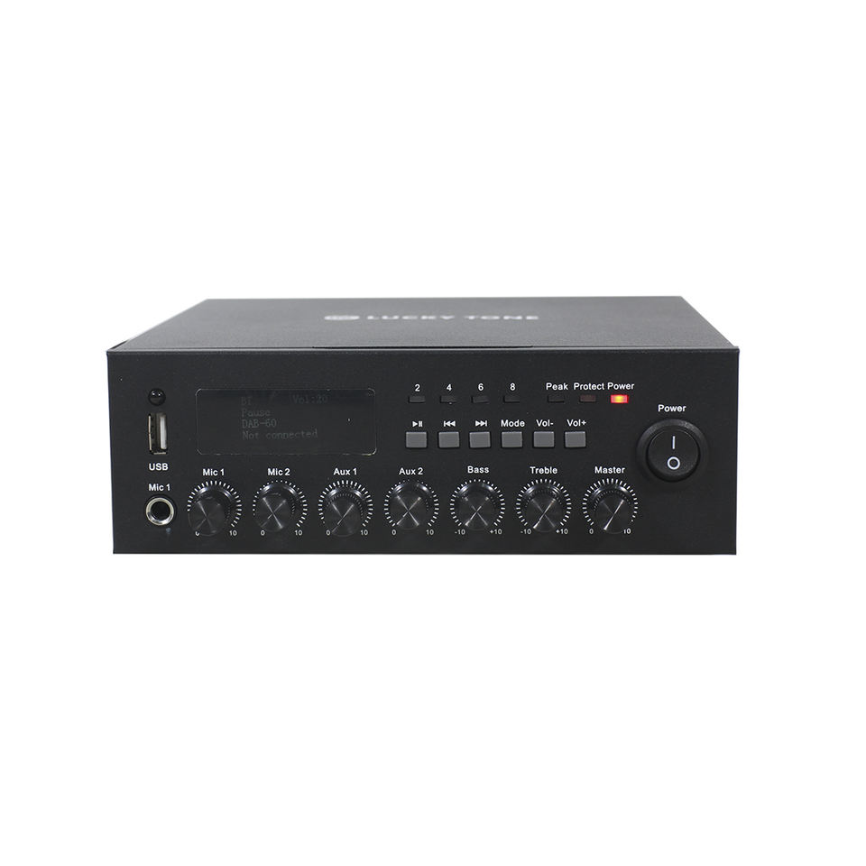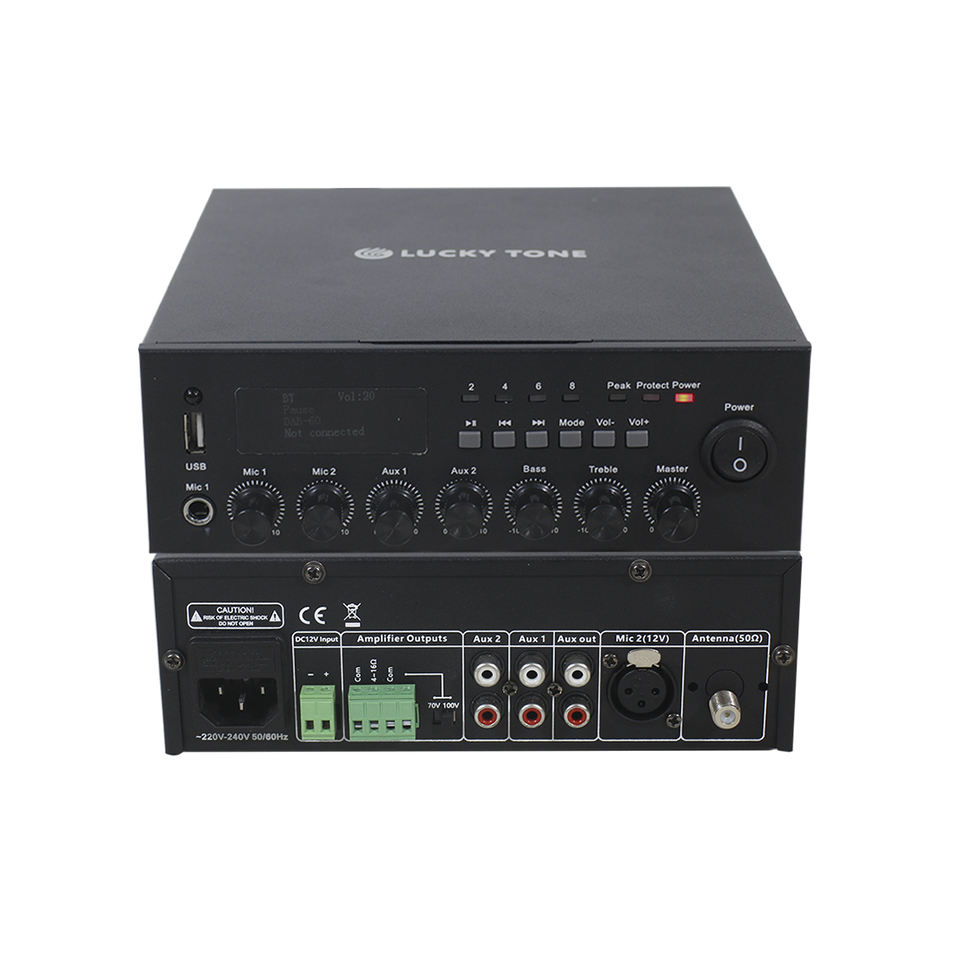 Amplificateur de puissance de mixage Lucky Tone 30W avec tuner USB/DAB/Bluetooth et entrée de batterie de secours 12VDC