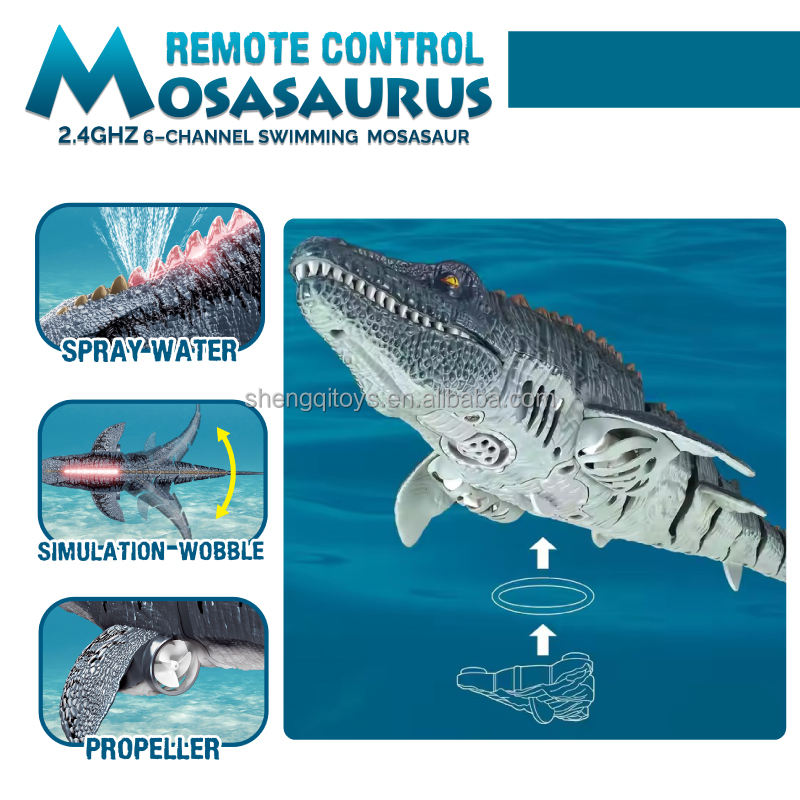 Jouets Lucky Toys, dinosaure télécommandé 2,4 G, étanche, modèle RC mosasaure, jouets de plongée RC avec fonction de lumière et de pulvérisation