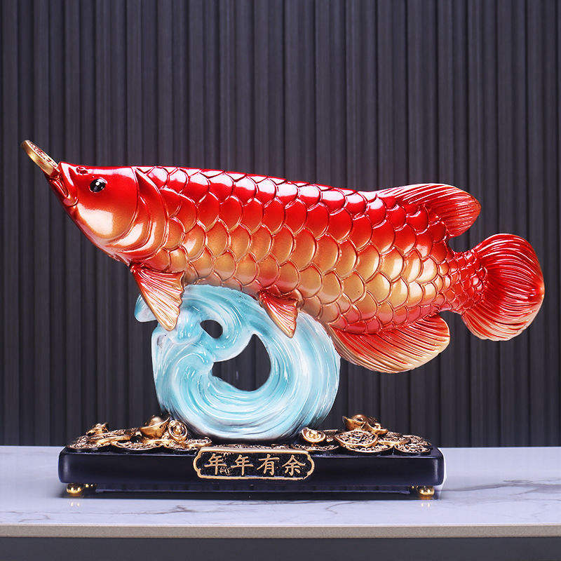 Lucky Arowana Epoxy Resin Figurines Artistic Home Decor Ornaments for Living Room TV Cabinets Wine Cabinets Store Opening Gifts