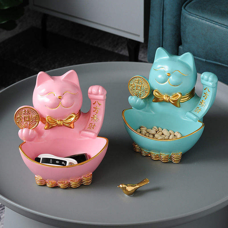 Lucky cat entrance key storage ornament, living room decoration, home decoration, housewarming, new home gift, opening gift