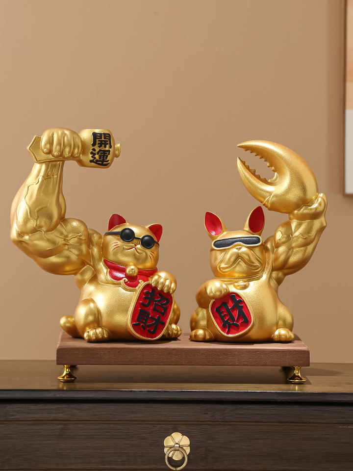 Bafanglai High-End Resin Crafts Folk Art Lucky Cat Ornament for Home Furnishing for Living Room Desktop Front Desk Money-Earning