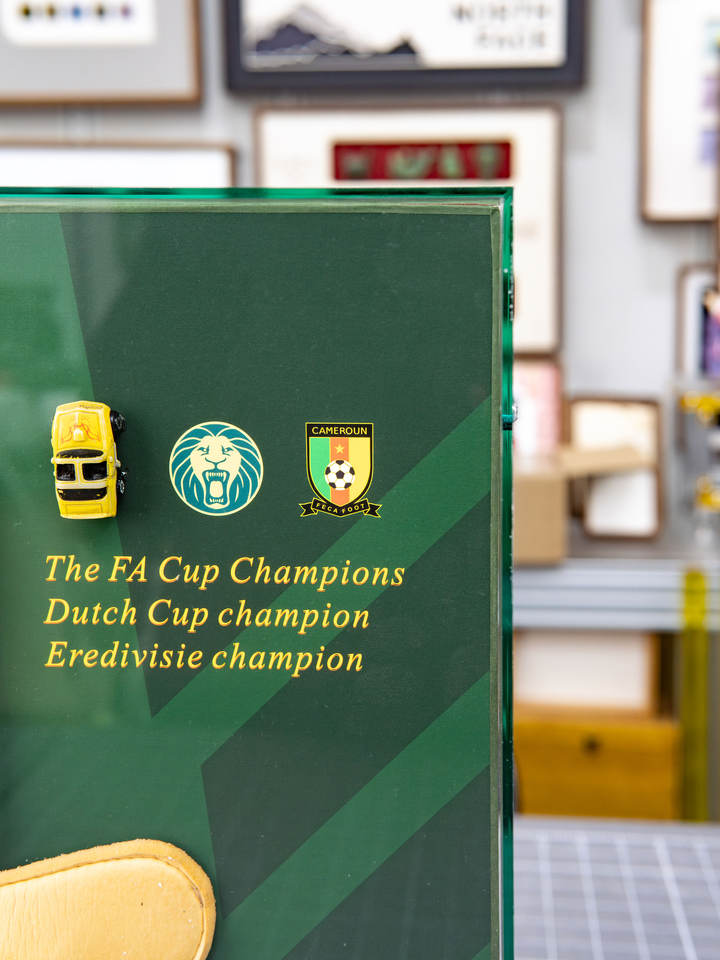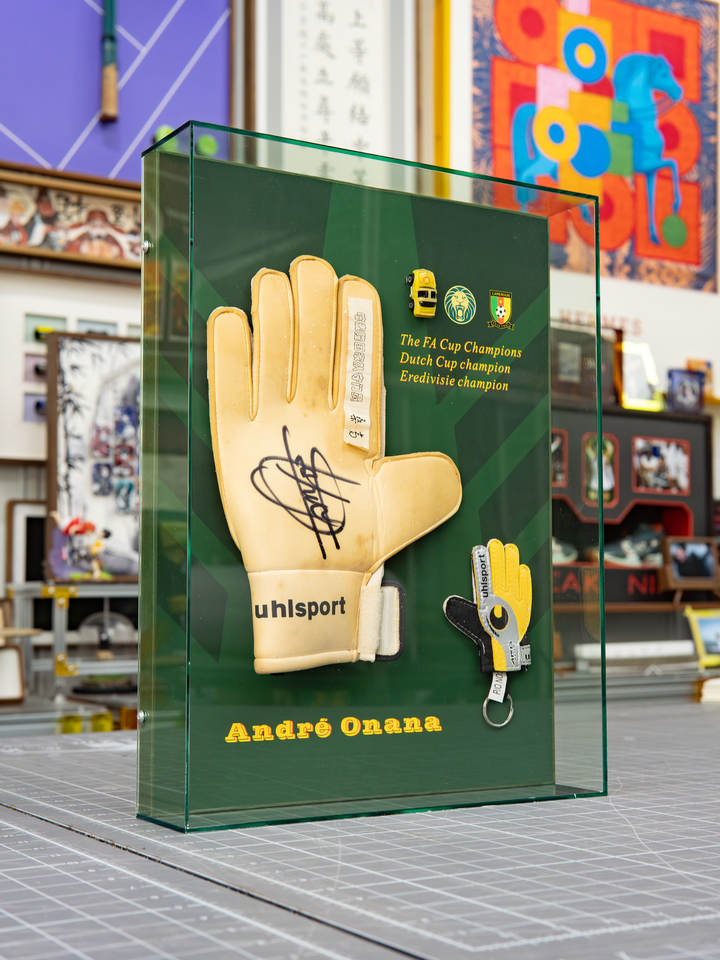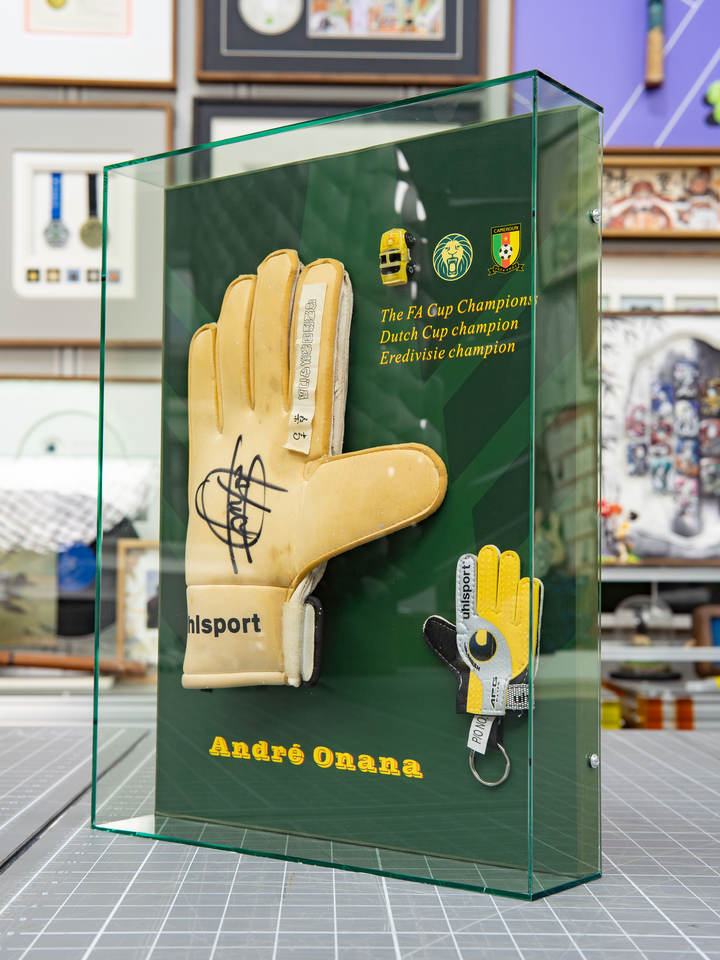 Cadre photo rectangulaire vertical en acrylique transparent fait main avec logo personnalisé Ludaye, impression UV, pour gants de gardien de but, à suspendre au mur