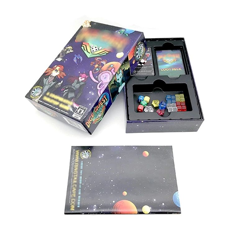 Ensemble de jeux de société: rétrécir envelopper les cartes, insérer dans la boîte et rétrécir envelopper la boîte.