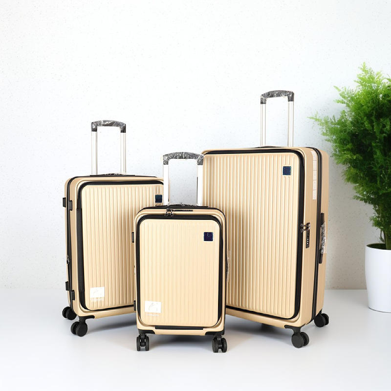 Ensemble de bagages 20 pouces à ouverture frontale, trois pièces avec serrure pour les voyages de loisirs, 4 roues, fermeture éclair, unisexe, couleur unie