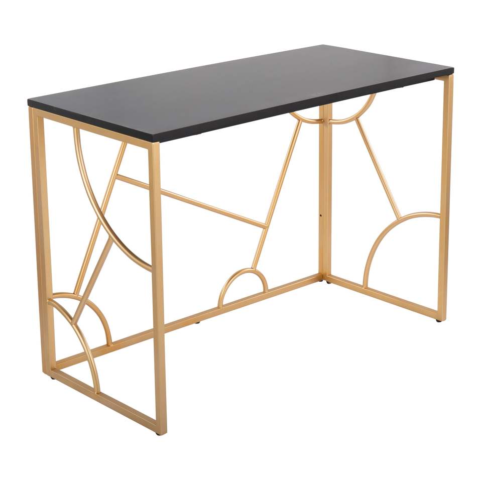 LumiSource DB Constellation Bureau d'ordinateur contemporain en métal doré et bois noir Design durable et stable