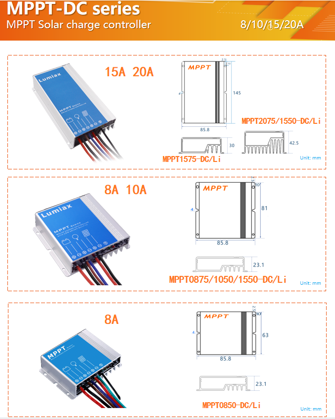 Contrôleur solaire Lumiax 12V 24V Mppt 20a 10a Régulateur Chargeur