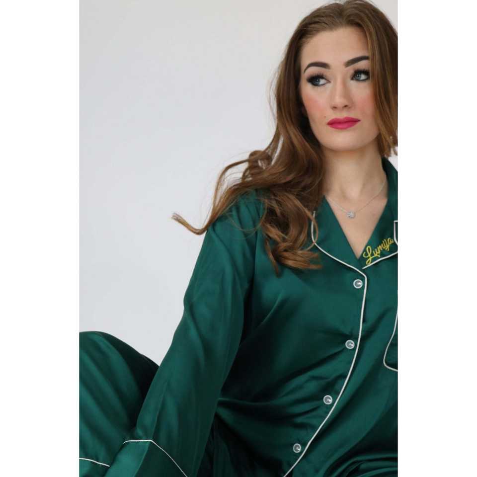 Lumija Swimwear Elegant and Luxurious Forest Green Women's Silk Satin Pants Size 8 Fashionable & Chic