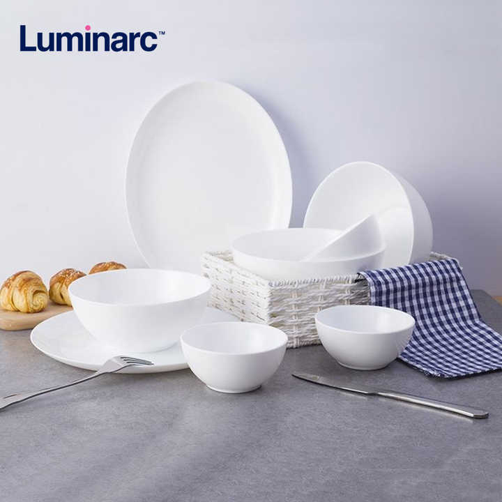Collection de Plats et Bols en Verre Opale Pure Luminarc – Service de Table Simple – Bol à Soupe, Plat à Poisson, Assiette Chaude – Vaisselle en Verre Opale