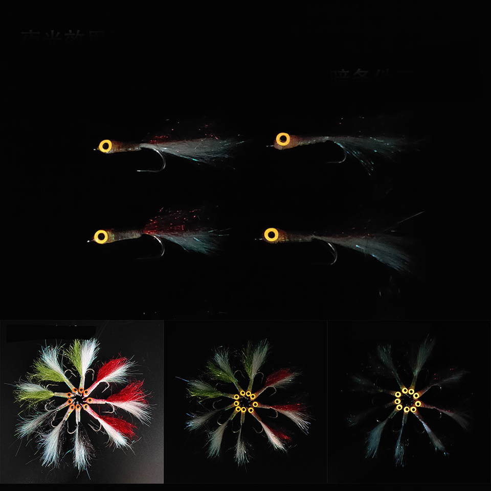Lumineux 3D Fish Eye Minnow Streamer Fly Ice Dubbing Pêche en eau salée Truite Bass Leurre Mouches Appâts