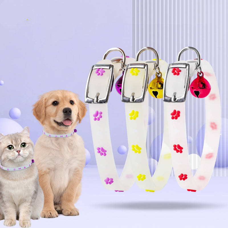 Collier de chat lumineux brillant petit collier de chien Anti-perte Fluorescent Silicone chat cloche collier cou anneau Pet chat accessoires