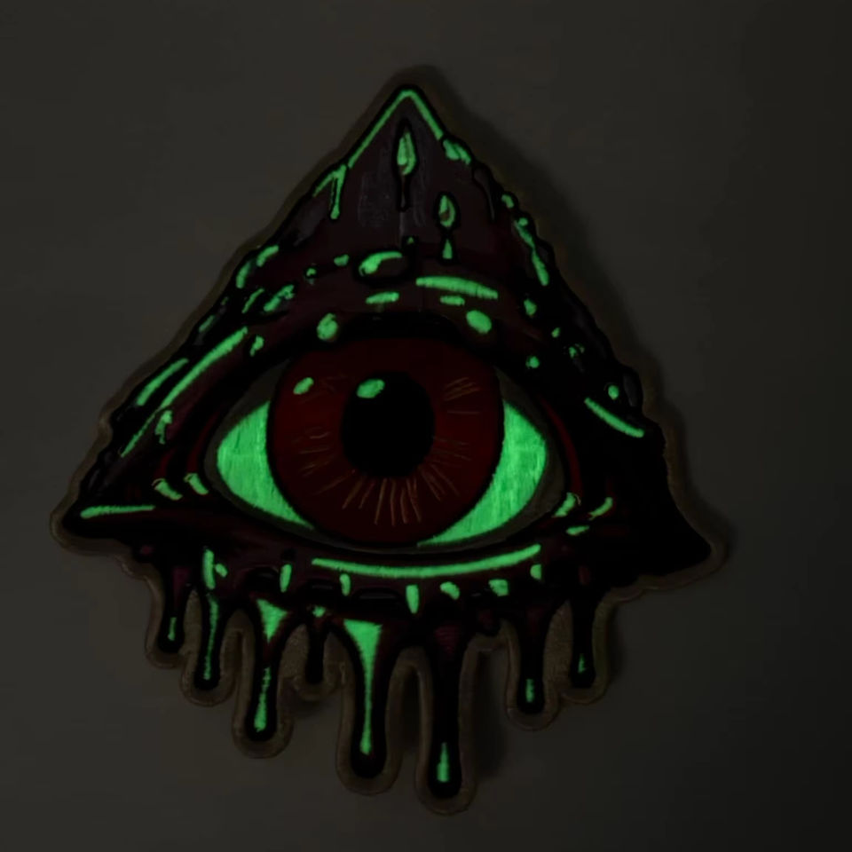 Lumineux Personnalisé Petit Logo De Broderie Brodé Insigne Patch Blanc Lueur dans le Noir Patchs GITD Patch Violet Grand Oeil