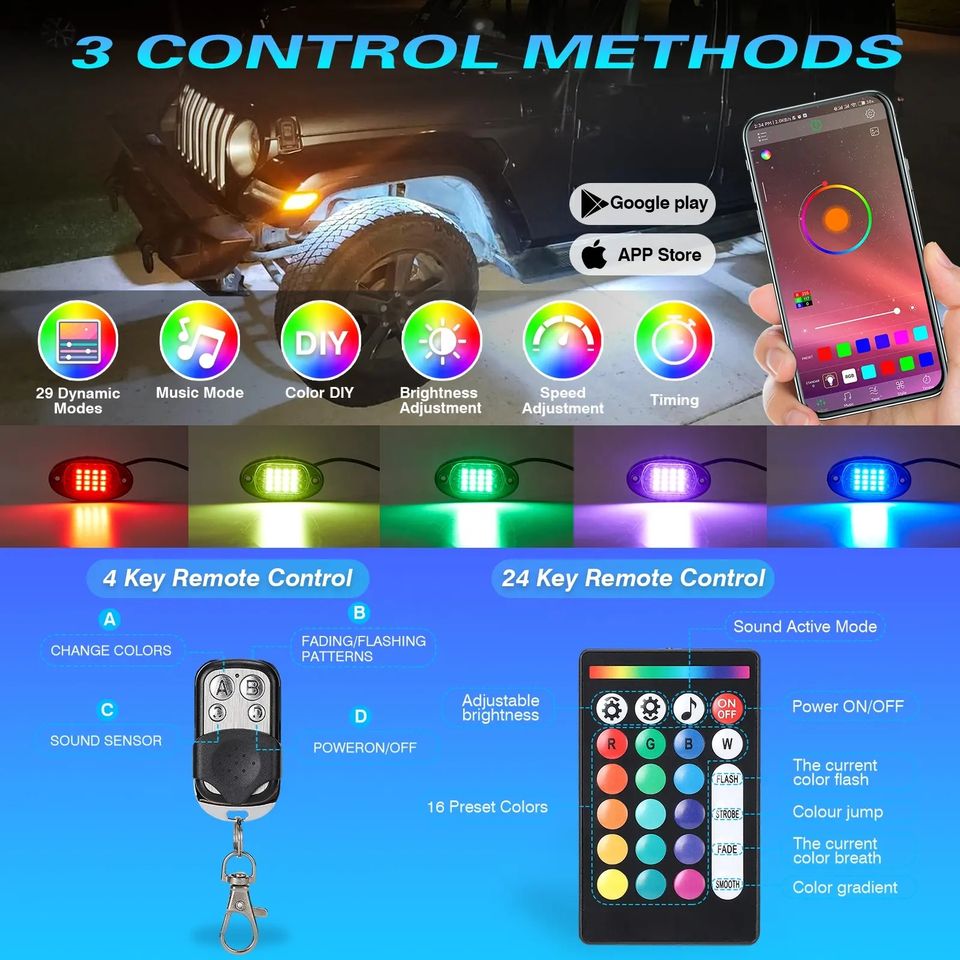 Lumières d'ambiance nocturnes LED pleine couleur lumineuses à l'extérieur de la voiture avec bandes lumineuses sous le châssis 10Pods Lampe torche RVB