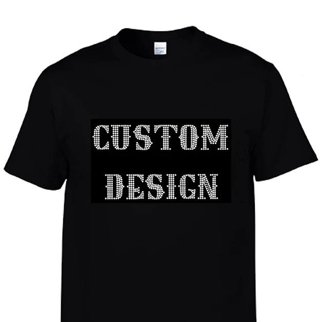 T-shirts décontractés à manches courtes en coton 100% avec strass thermocollants, design de lettres personnalisé, haute qualité, effet lumineux